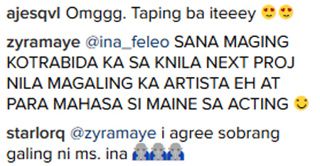 Seasoned actress Janice de Belen, who was last seen in ABS-CBN's daytime series Be My Lady, also posted a photo with Maine on her Instagram account.